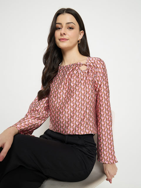 mSECRET Botanical Print Top and Solid Bottoms Pink Night Suit