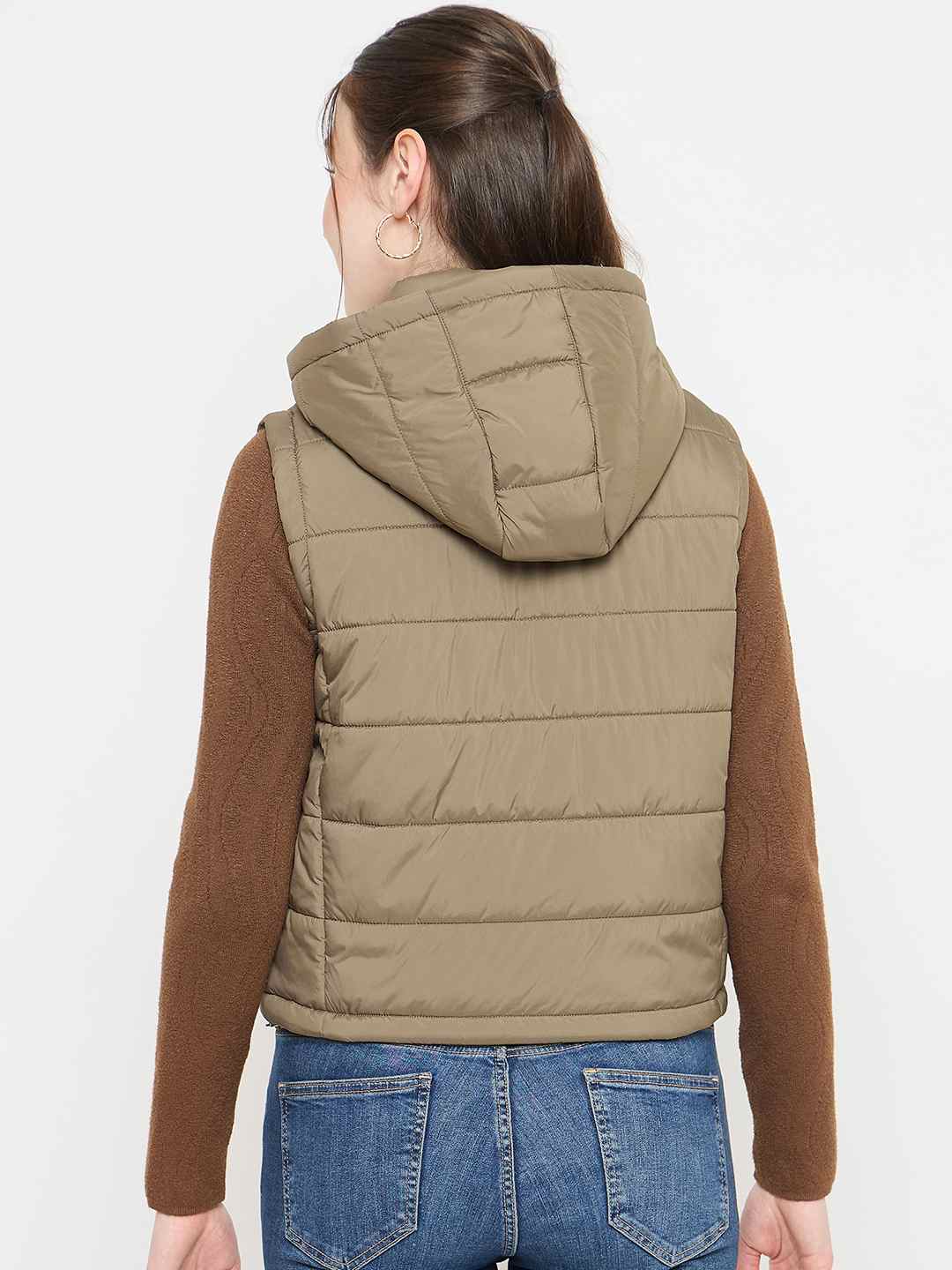 Madame Sleeveless Quilted Green Puffer Jacket for women lightweight quilted design, sleeveless style, perfect for layering, casual wear, and travel.