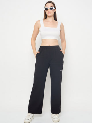 mSECRET Pleated Wide Leg Cotton Blend Black Track Bottoms