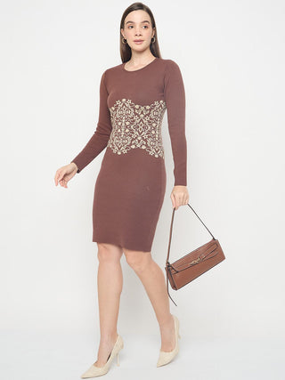 Madame Abstract Print Viscose Blend Coffee Brown Knitted Dress