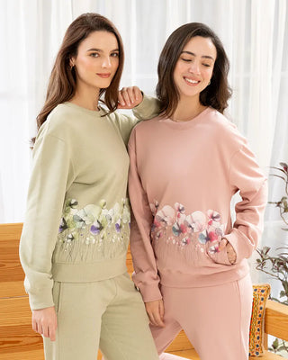 Madame Embellished Print Cotton Blend Peach Sweatshirt