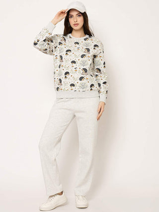 mSECRET Allover Printed Ecru Colour Sweatshirt