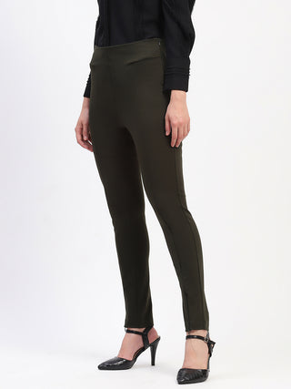 Madame Pleated Solid Olive Straight Trousers