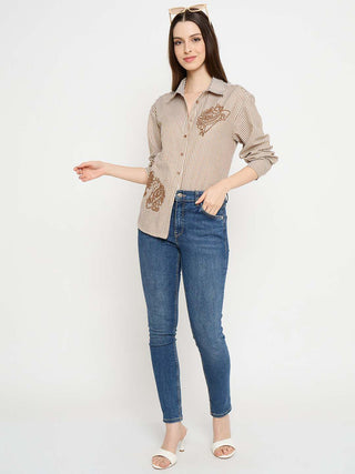 Madame Embroidered and Ruffle Trim Detailed White Cotton Shirt