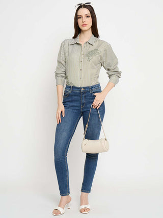 Madame Embroidered Half Sleeve White Cotton T-shirt
