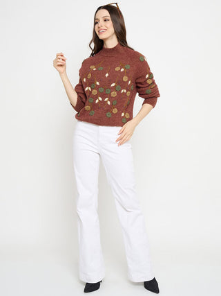 Madame Floral Embroidery Cotton Blend Green Sweatshirt