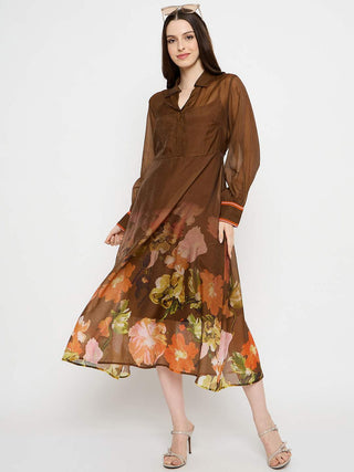 Madame Floral Print Buttoned Front Collared Off White Shirt