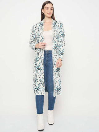 Madame Floral Print Contrast Stiched Collar Off White Shirt