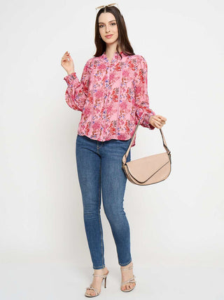 Madame Floral Print Full Sleeve Mauve Rayon Blend Top