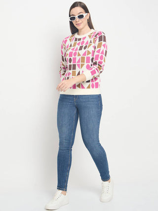 Madame Geometric Print Acrylic Blend Multicolor Sweater