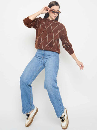 Madame Geometric Print Acrylic Blend Coffee Brown Sweater