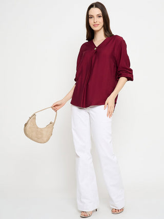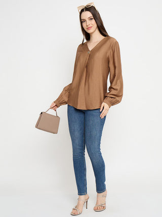 Madame Golden Rayon Blend Square Neck Belted Button Front Top
