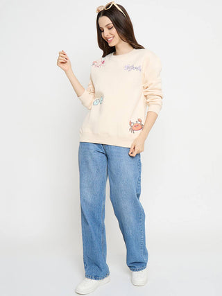 Madame Graphic Print Cotton Blend Cream Pullover Sweatshirt
