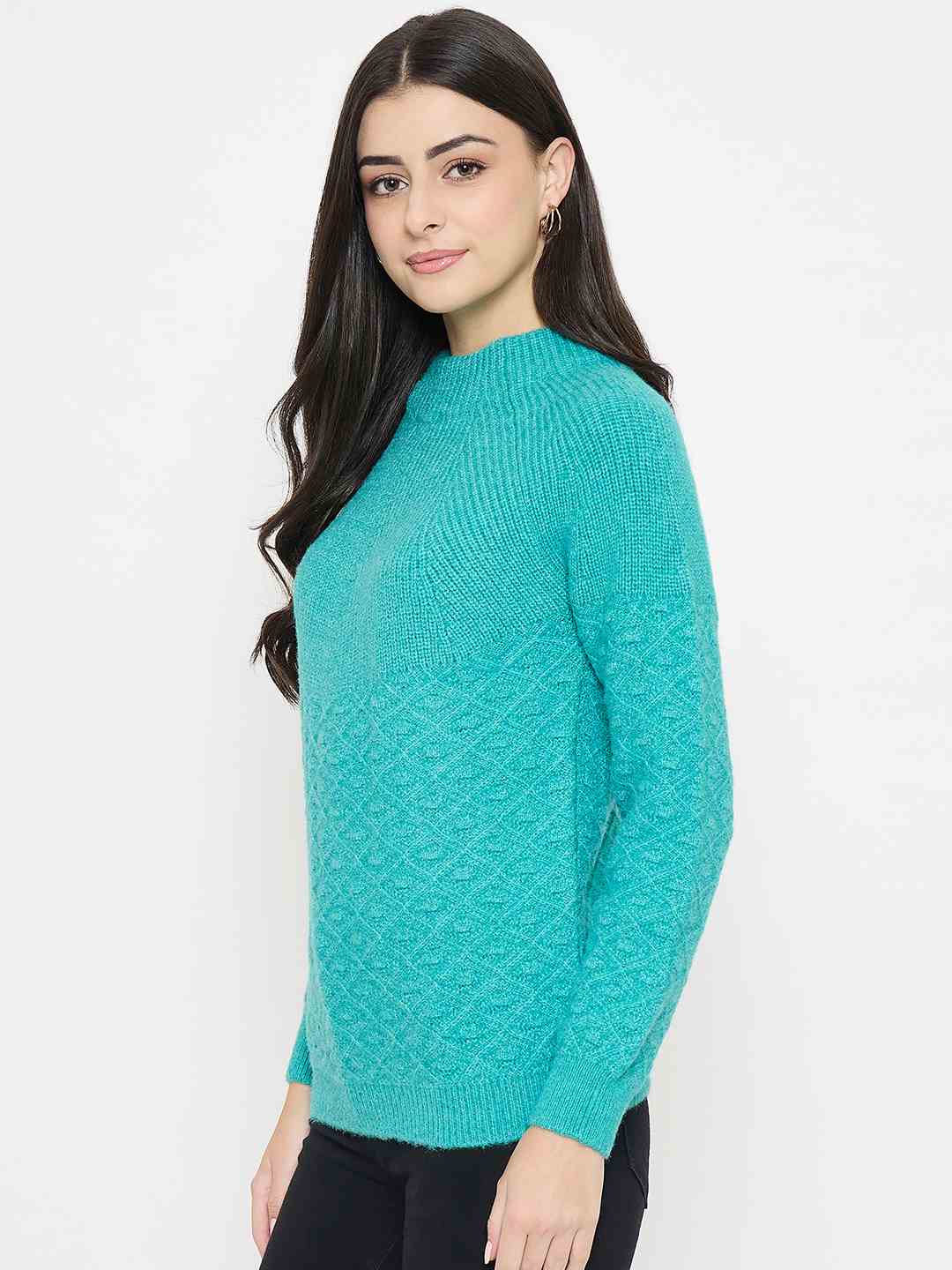 Madame Textured Mock Neck Peacock Green Acrylic Sweater