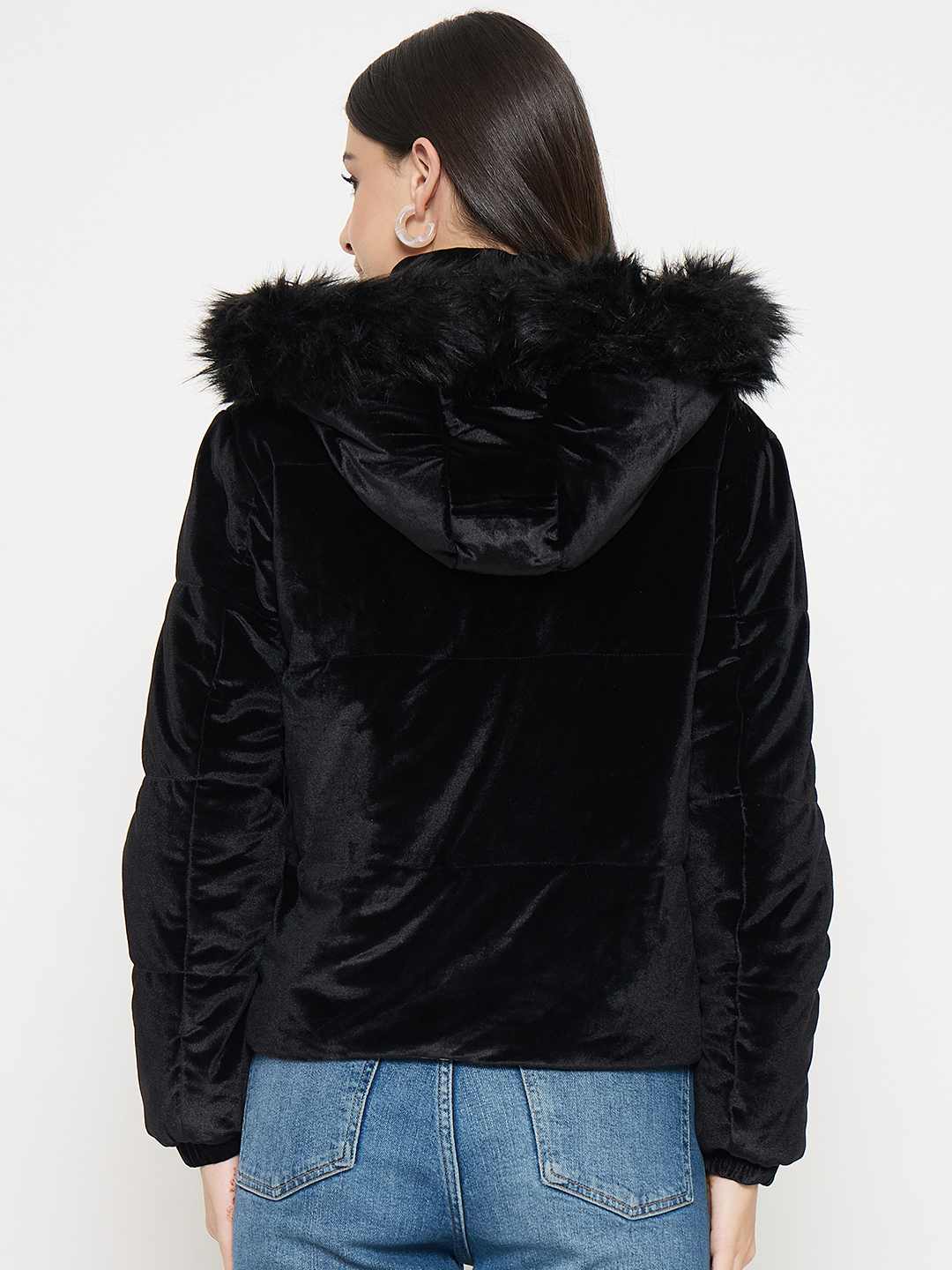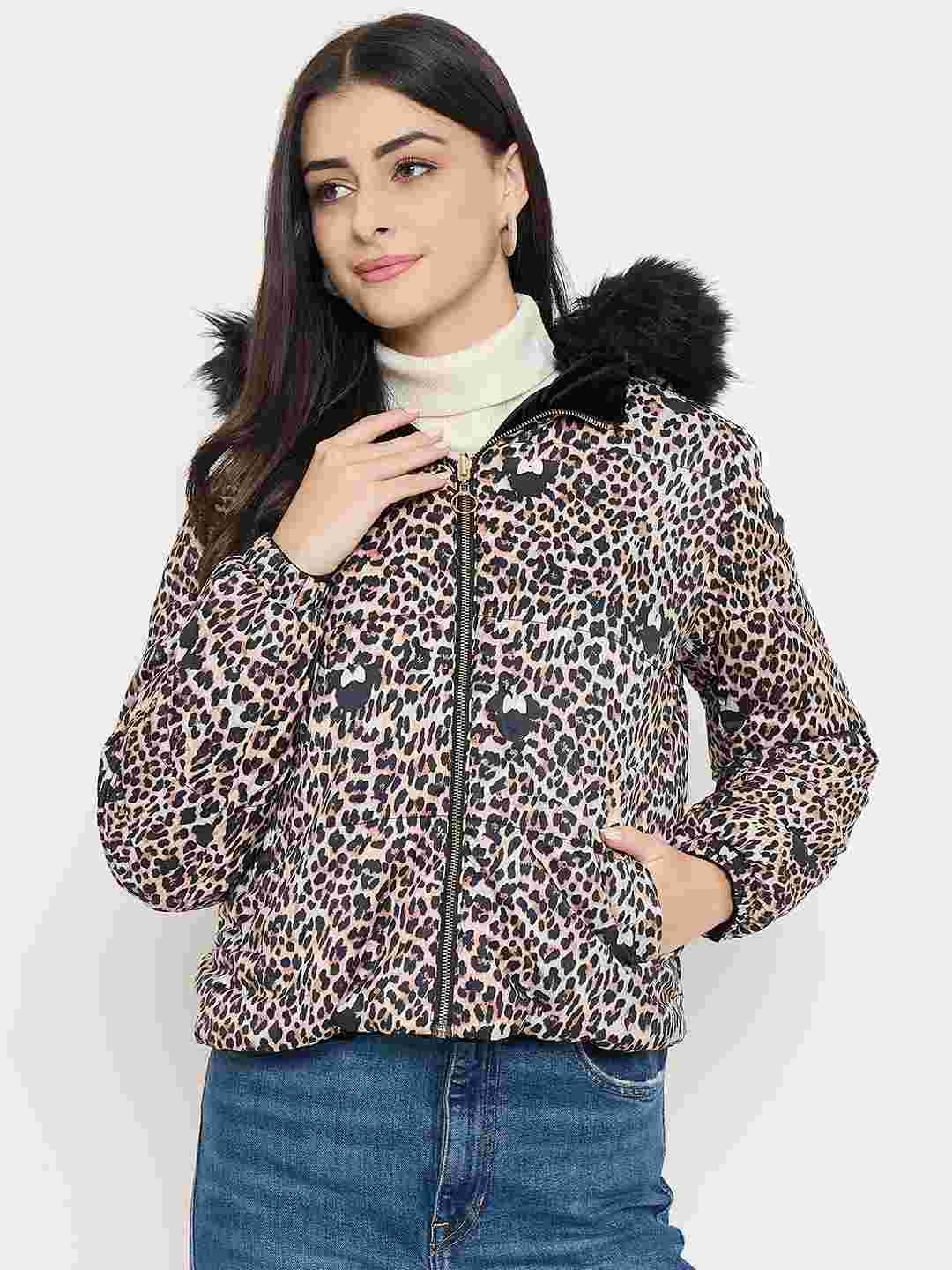 Madame Disney Printed Hooded Zip Up Black Jacket