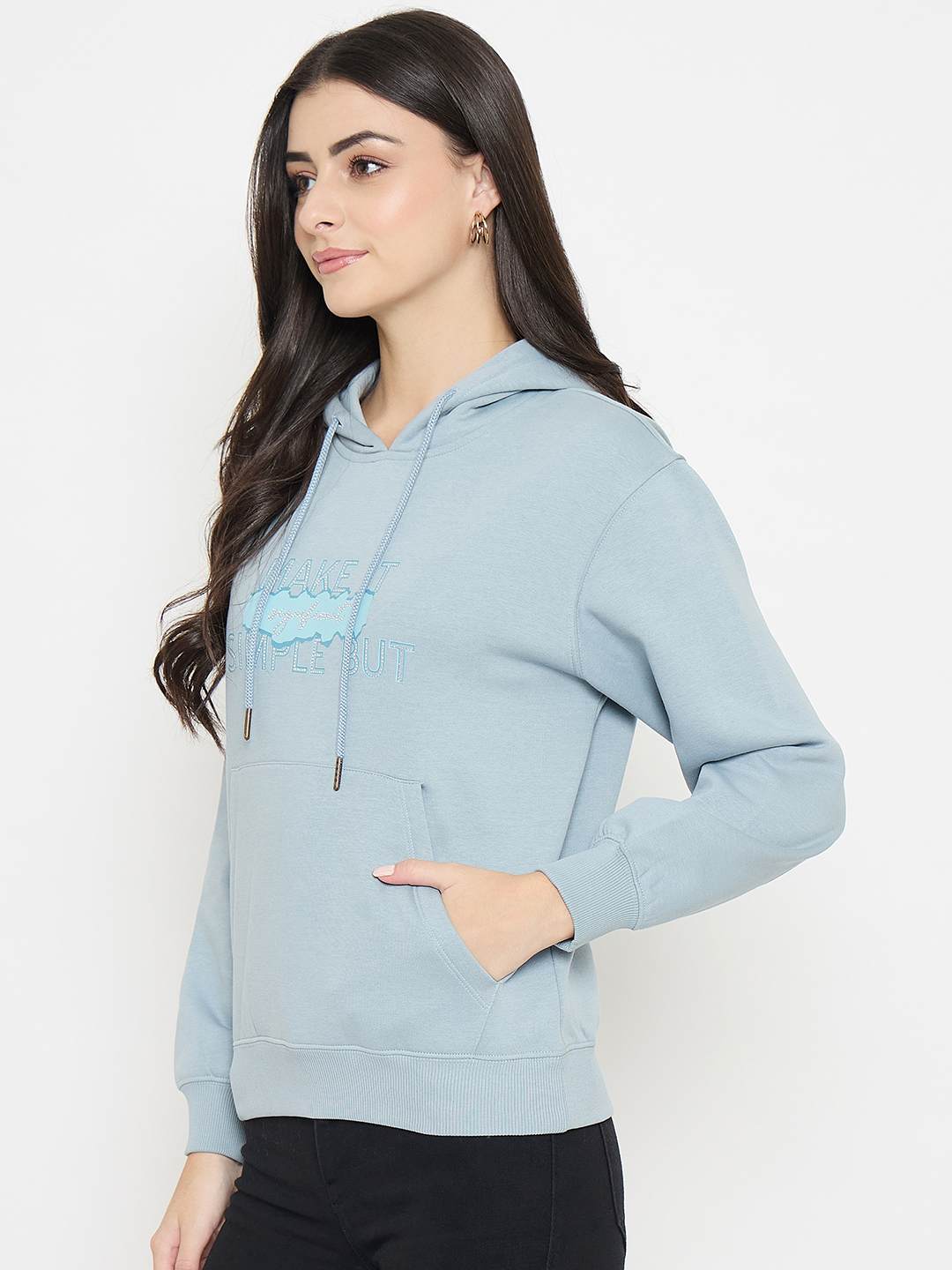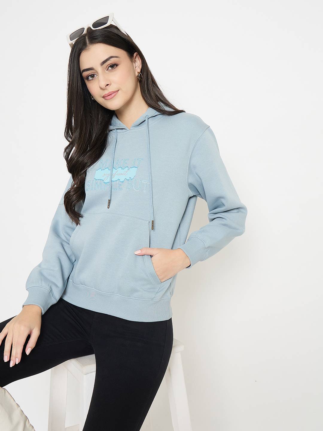 Madame Typography Print Light Sky Cotton Blend Sweatshirt