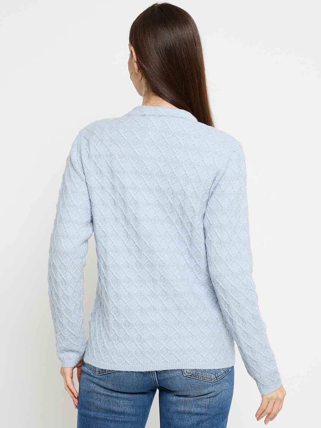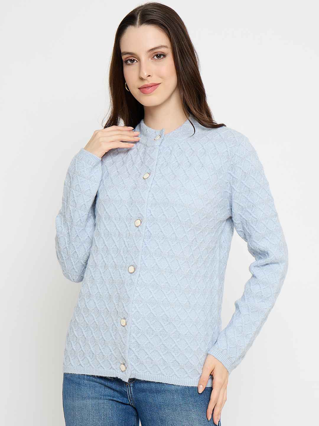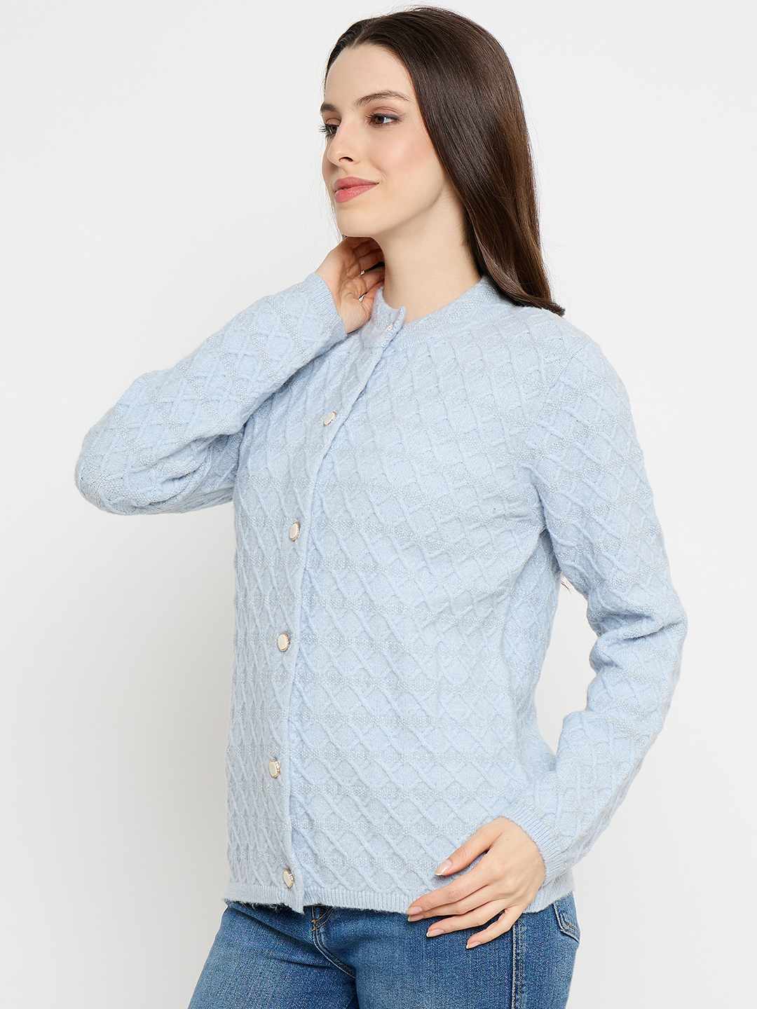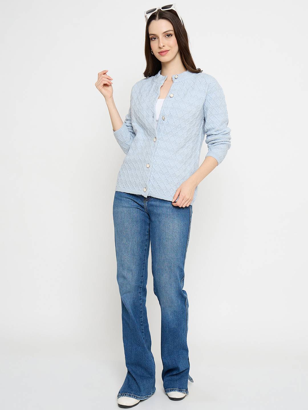 Brighten up your mood and your wardrobe with this sky blue striped cardigan. It provides cozy comfort and easy layering. Its cheerful stripes and lightweight texture make it perfect for casual outings.