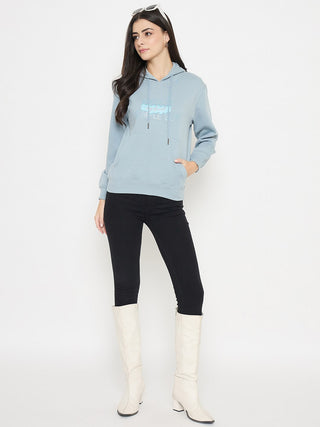 Madame Typography Print Light Sky Cotton Blend Sweatshirt