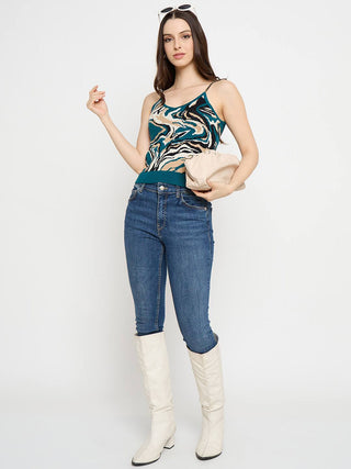 Madame Abstract Print Teal Cami Crop Sweater