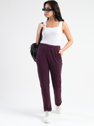 Madame Dark Purple Cotton Blend Track Bottoms