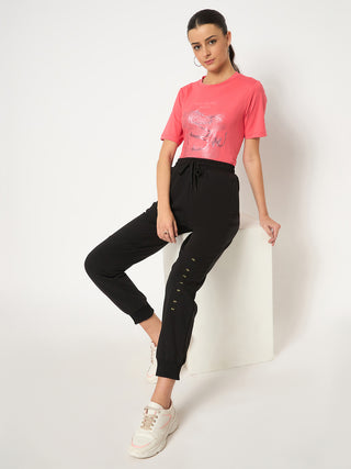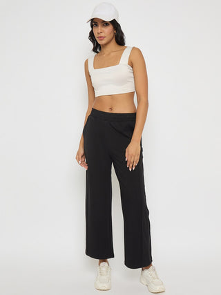 Madame Black Straight FIt Cotton Blend Track Bottoms