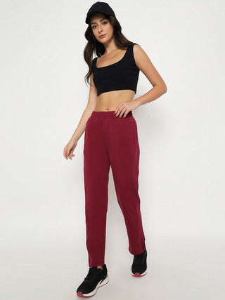 mSECRET Straight Fit Wine Red Cotton Blend Track Bottom