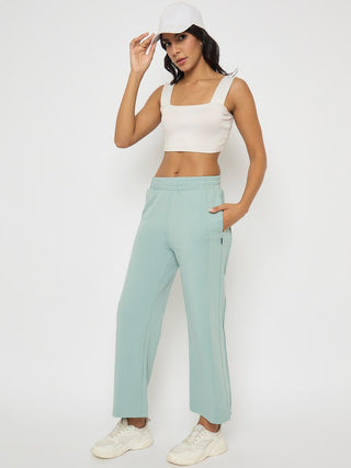 Madame Straight Fit Cotton Blend Mint Green Track Bottoms