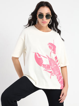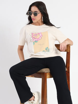 Madame Graphic Print Half Sleeve Off White Cotton T-shirt