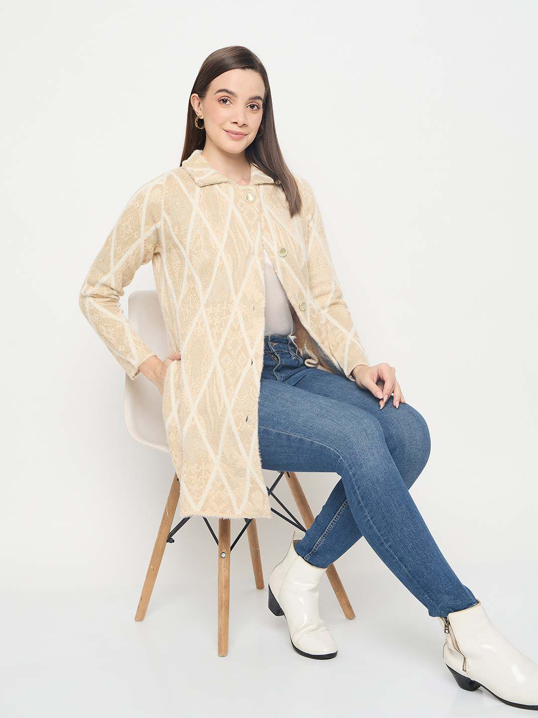 Add a little geometry to your winter wardrobe that play it cool. Its longline design and bold print make it a go-to piece for breezy days and stylish strolls alike.