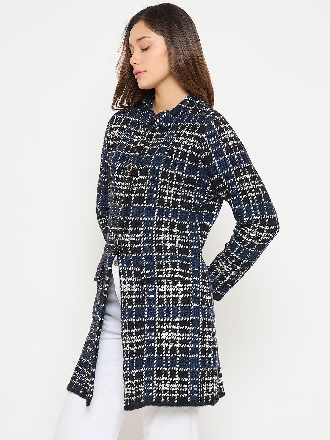 Elevate your layering game with this checkered long cardigan from Madame. Featuring a classic check pattern, a relaxed fit, and soft, breathable fabric, it combines cozy comfort with timeless style. Perfect for layering over casual or office wear, this versatile cardigan adds a chic, polished touch to everyday outfits.