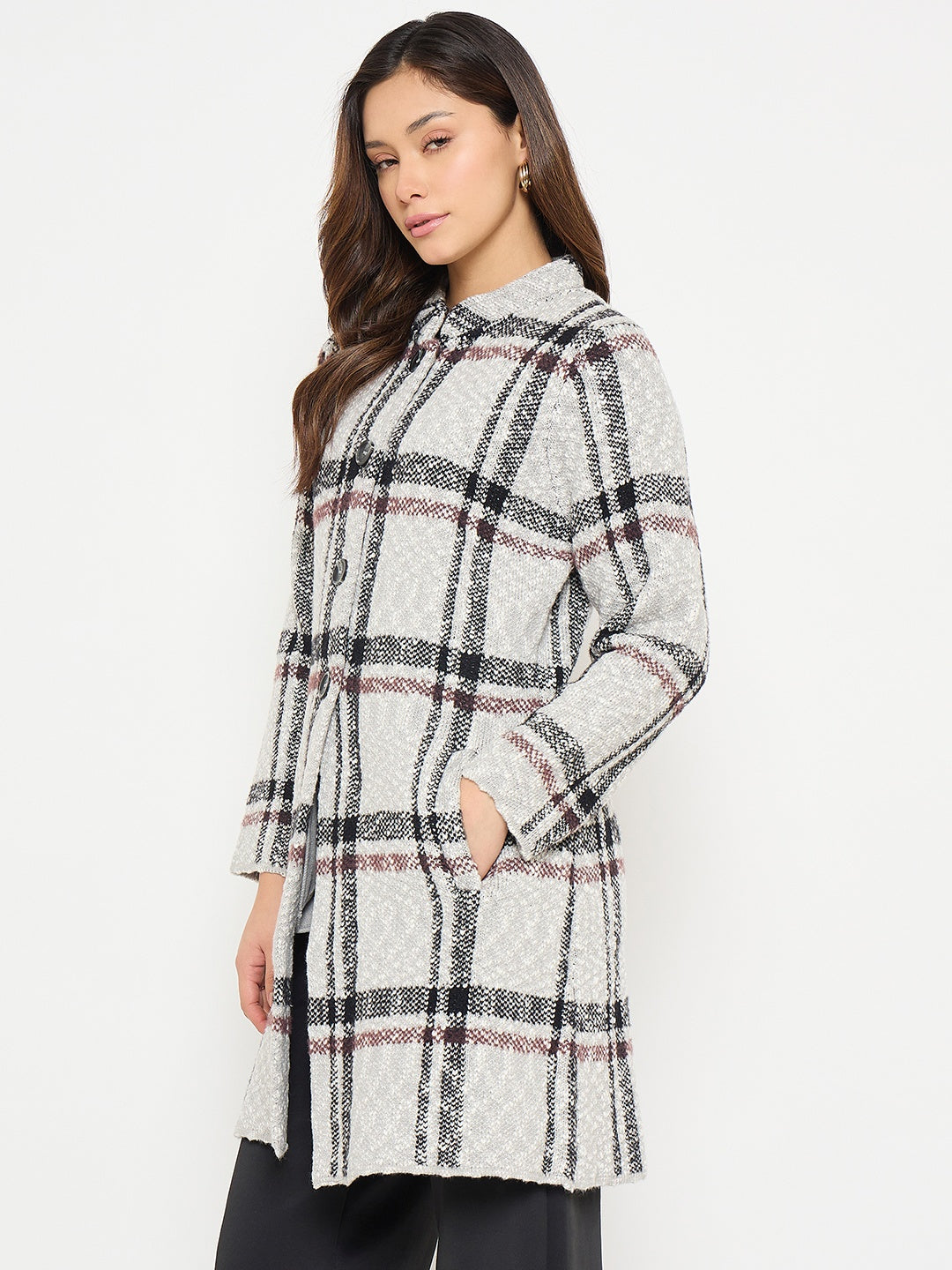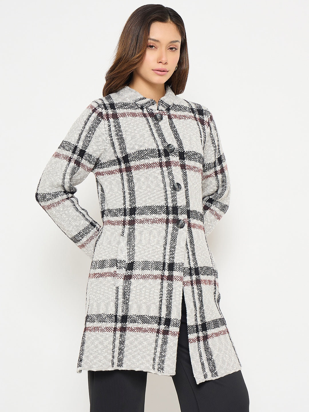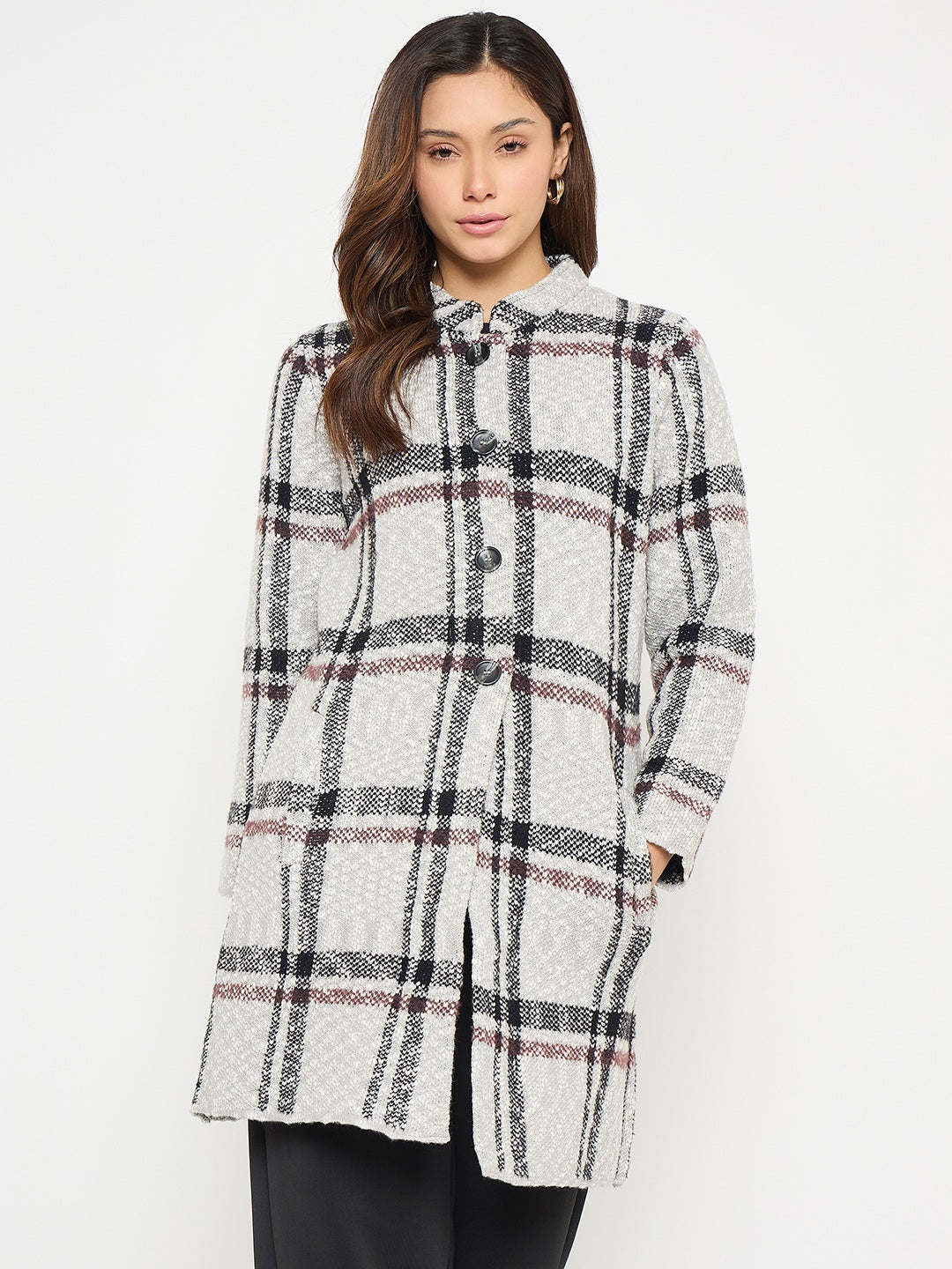 Elevate your layering wardrobe with this grey plaid print long cardigan from Madame. Featuring a relaxed fit and soft, breathable fabric, it blends cozy comfort with timeless style. Perfect for layering over casual or office wear, this versatile cardigan adds a chic, polished touch to everyday outfits.
