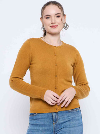 Madame Crew Neck Button Down Mustard Cardigan