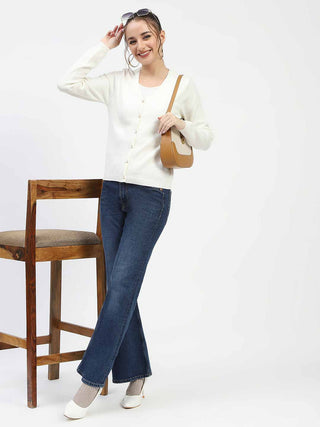 Madame Off White Button-Up Cardigan