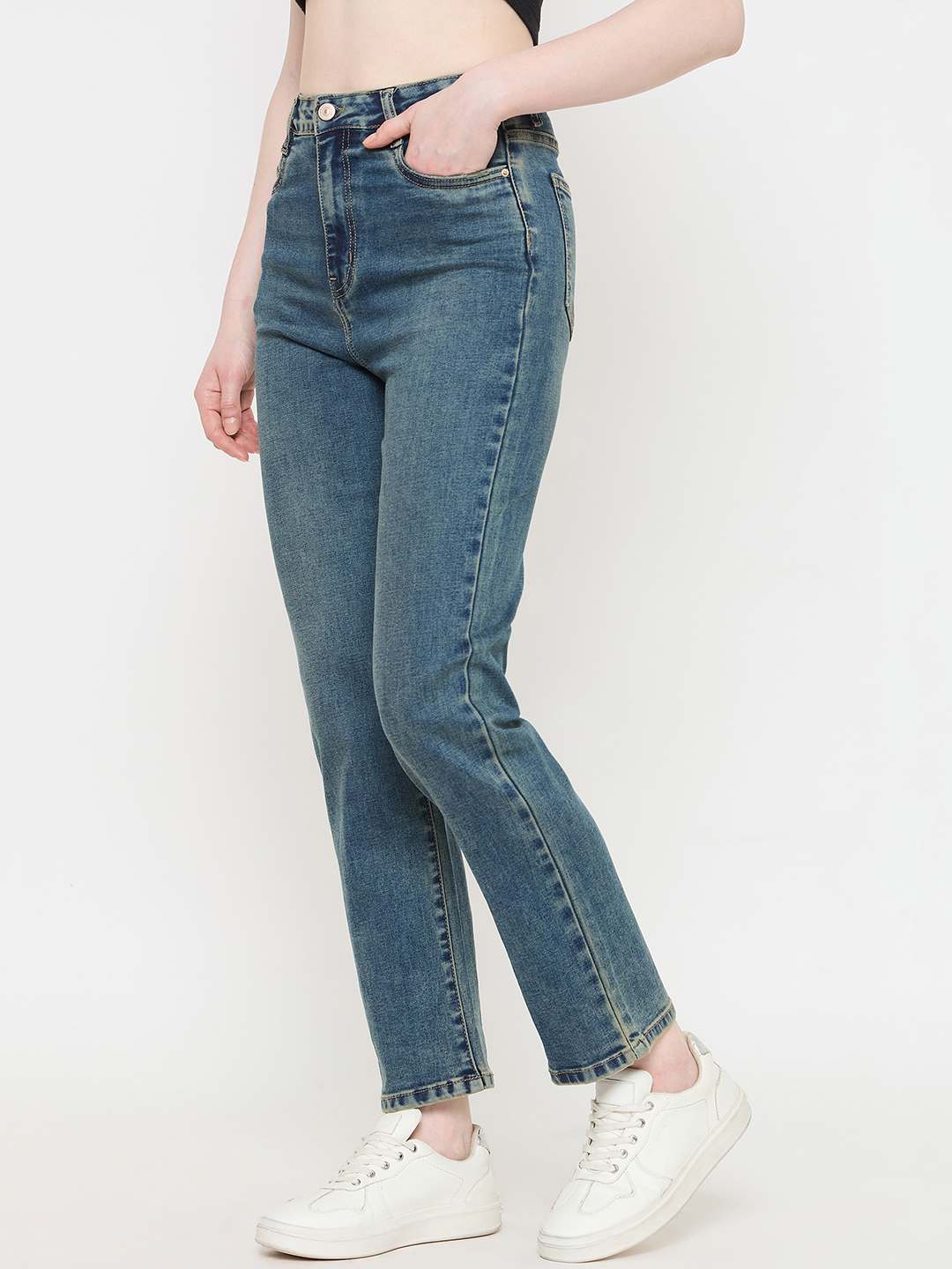 Madame tinted green straight fit jeans for women, coloured denim jeans, straight leg jeans, casual wear, everyday denim essentials.