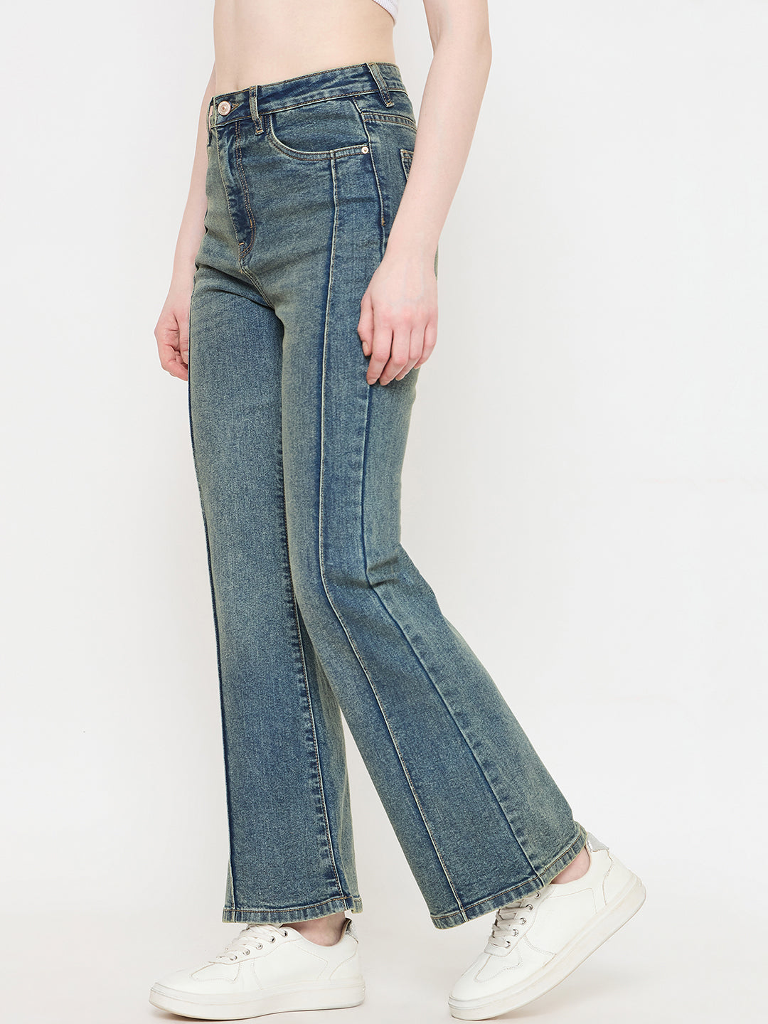 Elevate your casual wardrobe with the Madame Double Wash Tinted Green Straight Fit Jeans. Featuring a unique double wash effect and a straight fit silhouette, these jeans offer effortless style and everyday comfort.