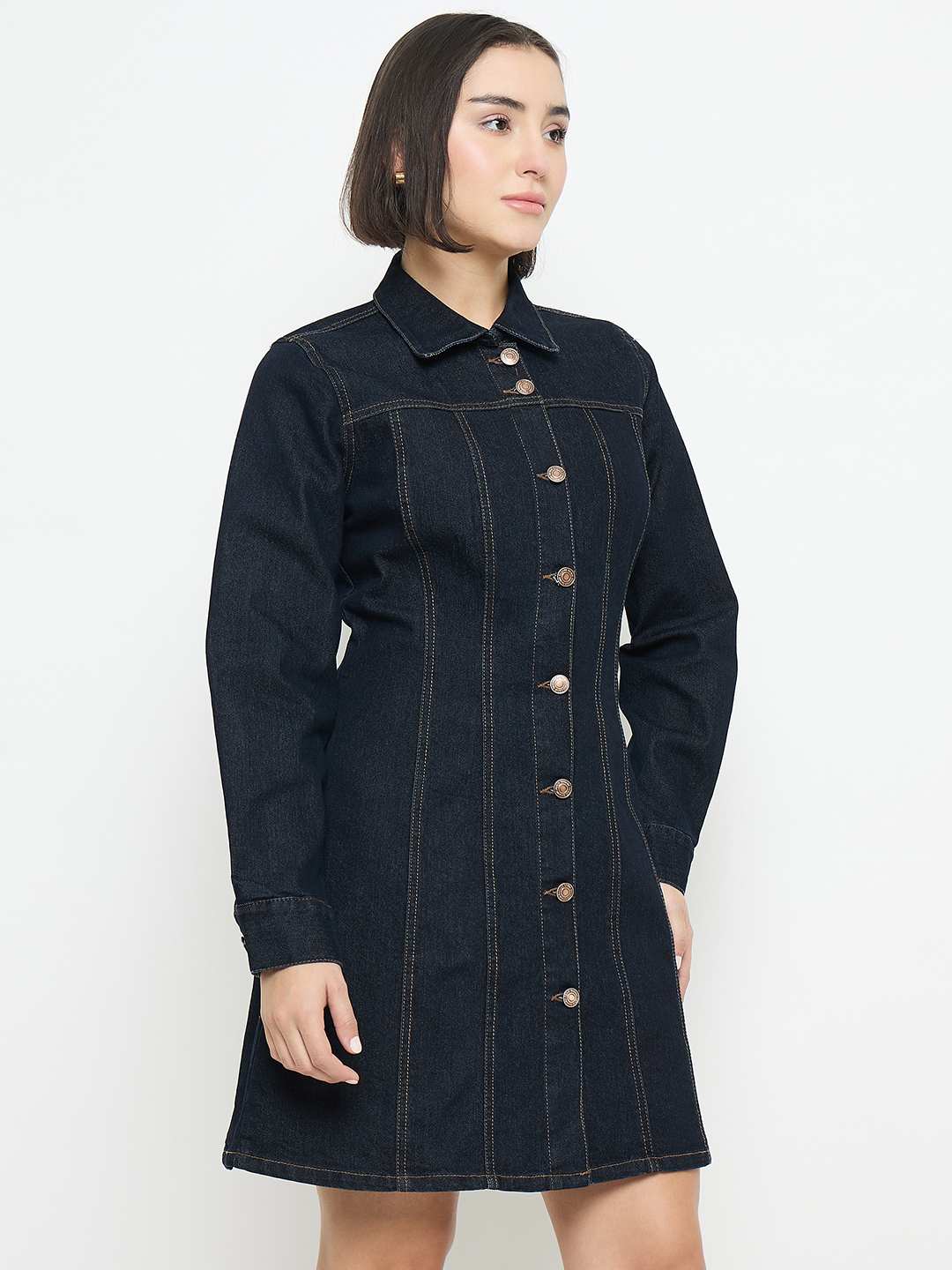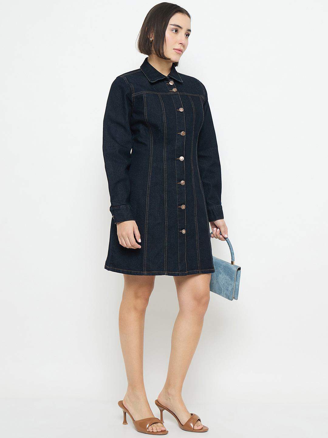 Refresh your everyday style with this chic denim shirt dress from Madame. Crafted for a structured yet easy fit, it blends casual sophistication with feminine appeal—perfect for brunch dates, office Fridays, or relaxed weekend outings.