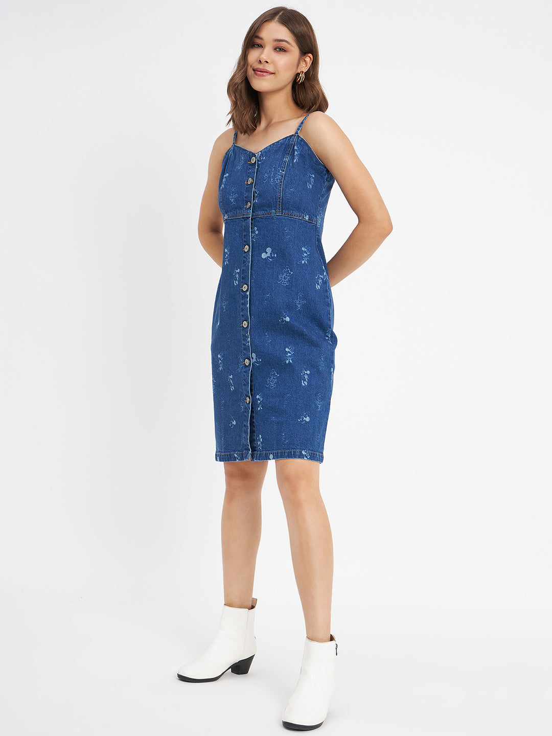 This blue cotton midi dress with a playful and fun all-over Disney print offers a relaxed fit and breezy feel, making it ideal for effortless everyday fashion.