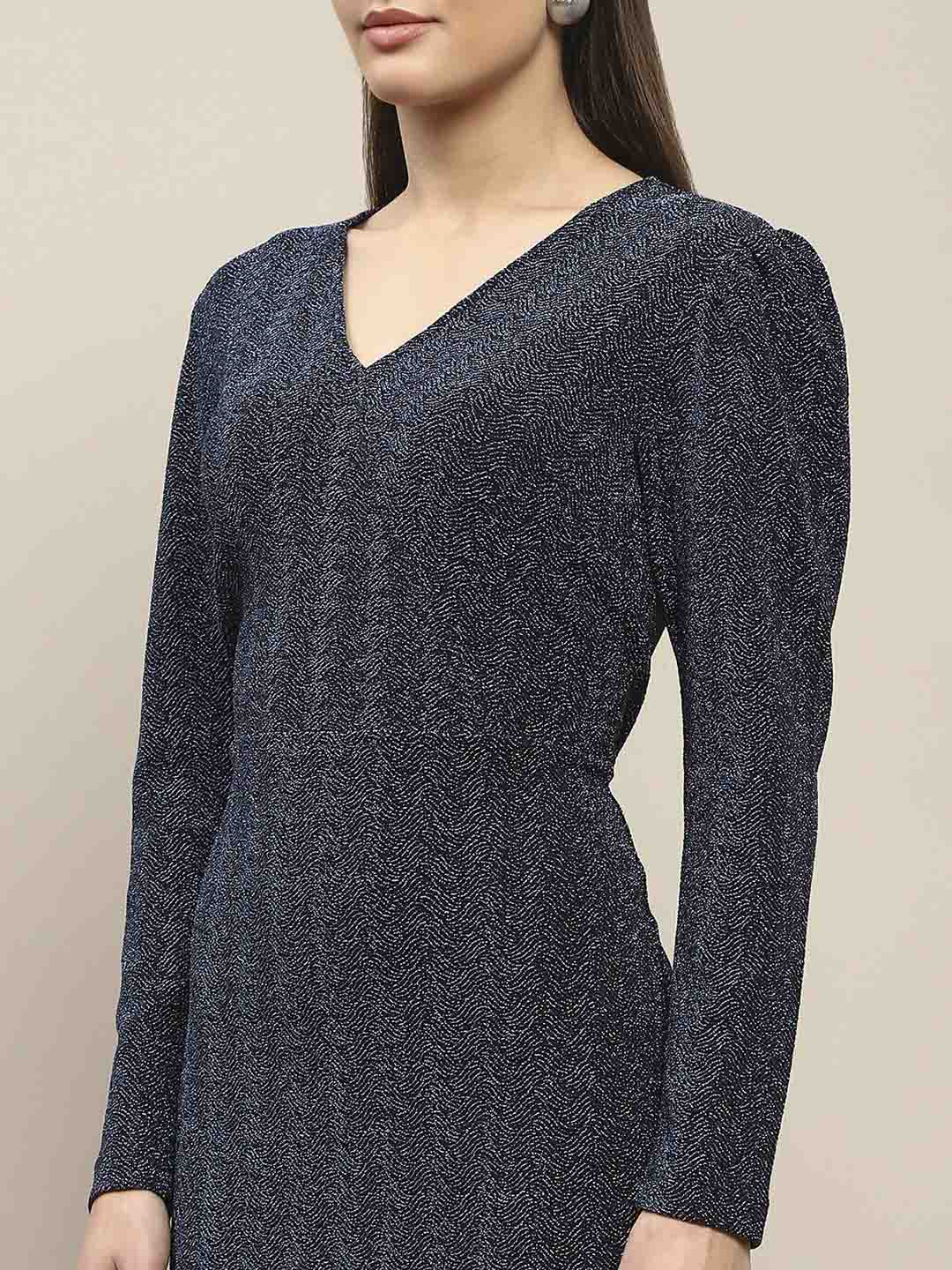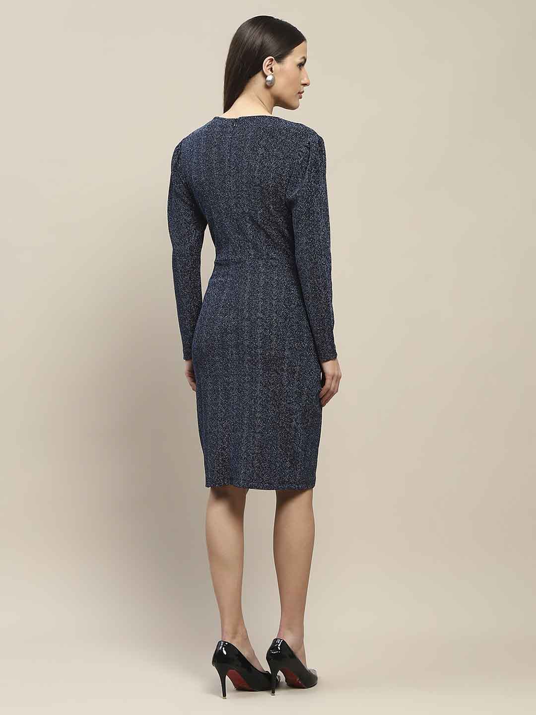 Madame Overlapping Detailed Navy Blue Knitted Midi Dress