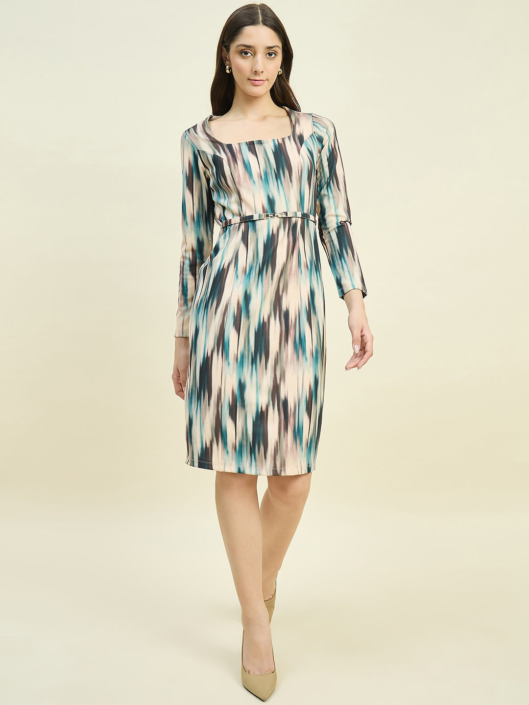 Step out in style with Madame abstract print beige dress. Its contemporary pattern and comfortable fit make it perfect for casual outings or brunch dates, bringing a chic and effortless vibe to your wardrobe.