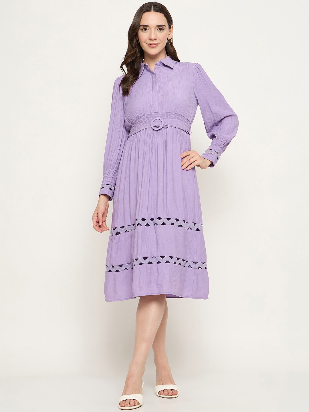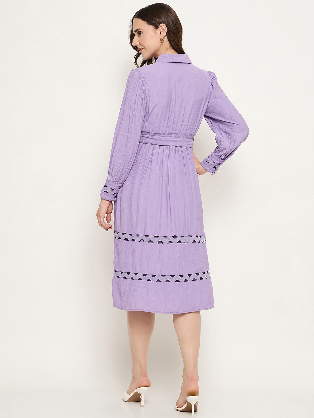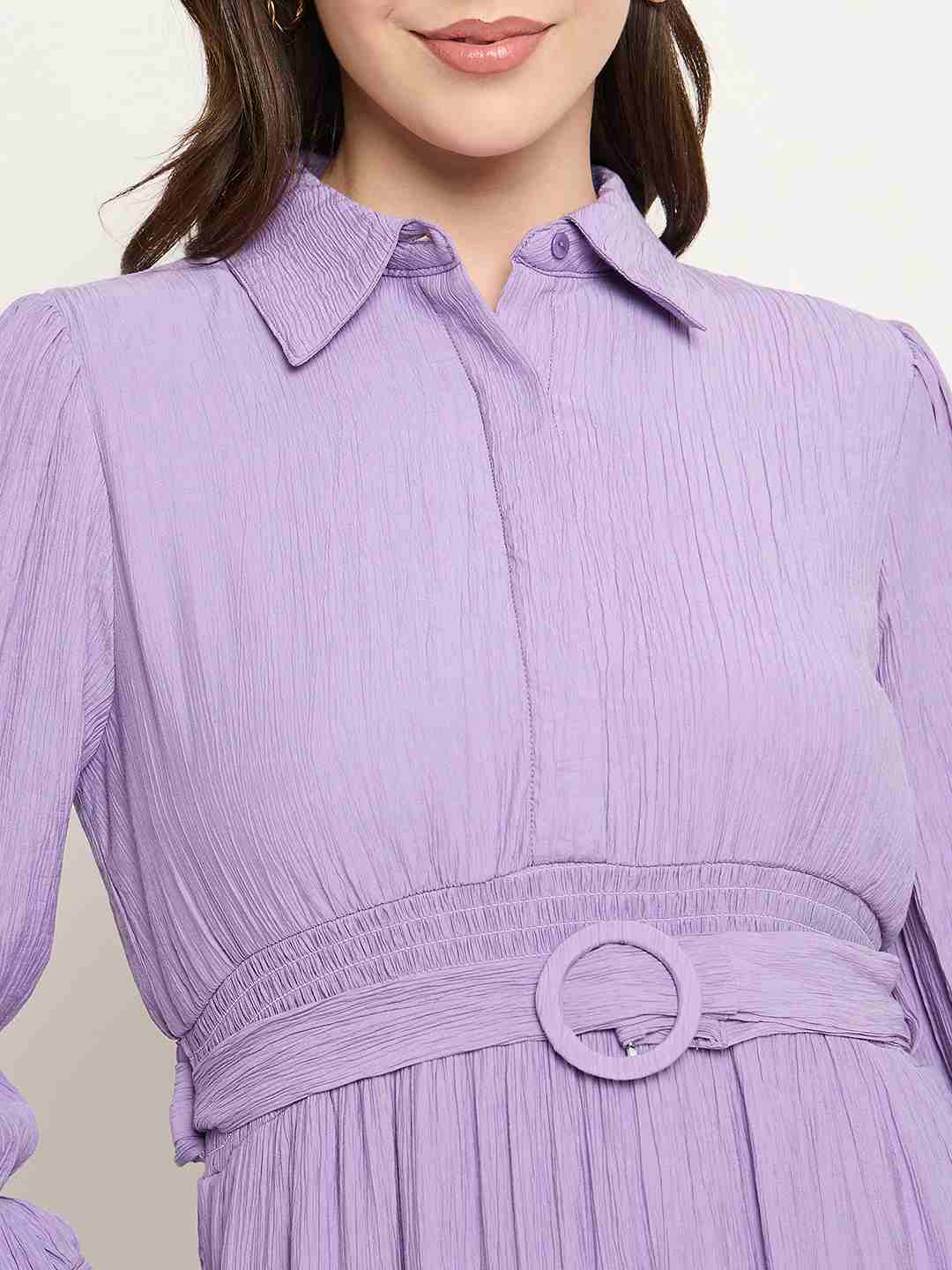 Madame Tiered Belted Lilac Maxi Shirt Dress