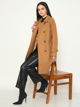 Madame Notch Lapel Neckline Brown Belted Long Coat