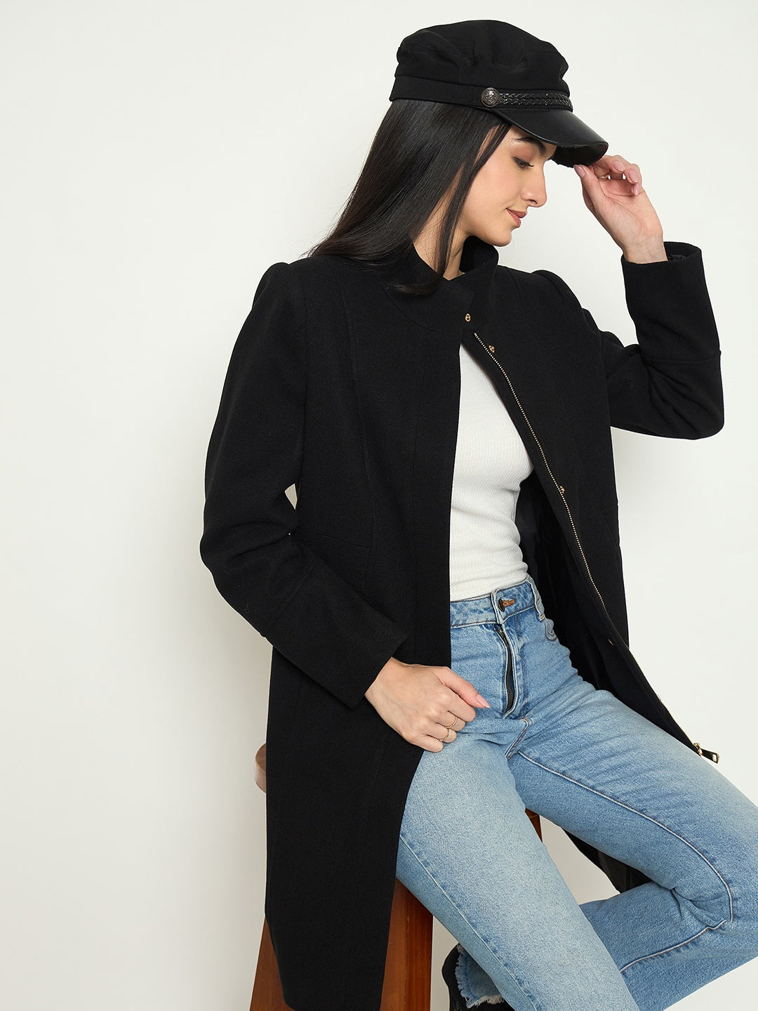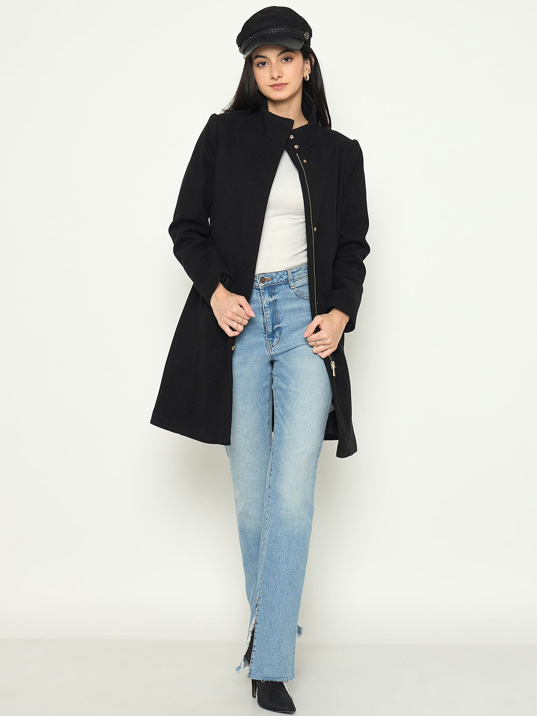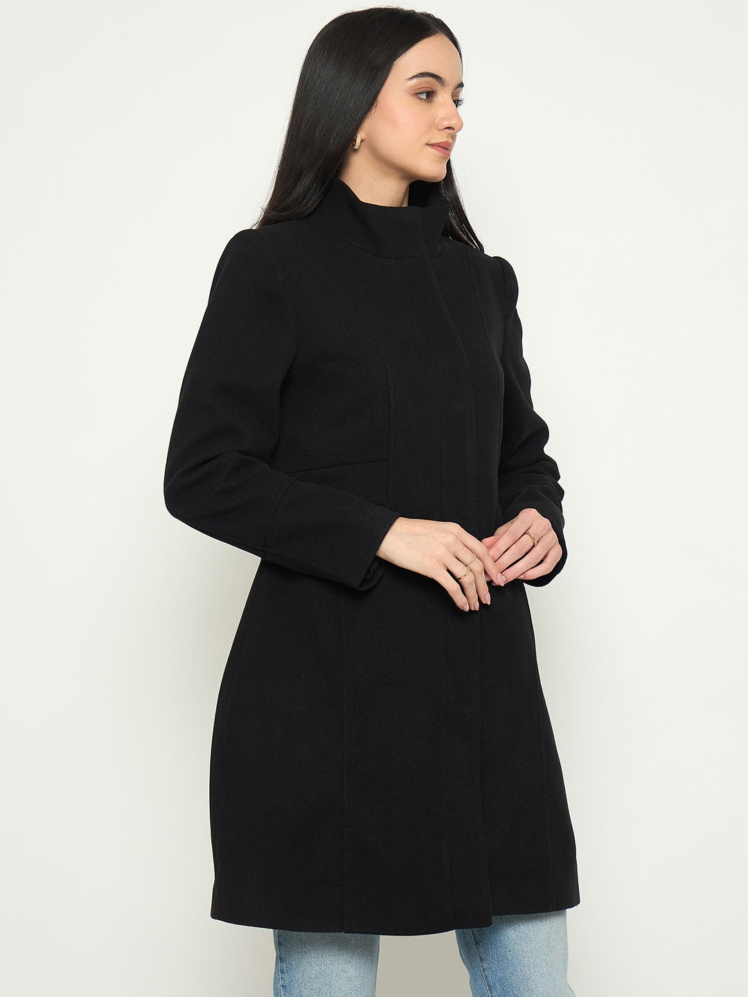 Madame Mock Neck Long Coat with Buttons