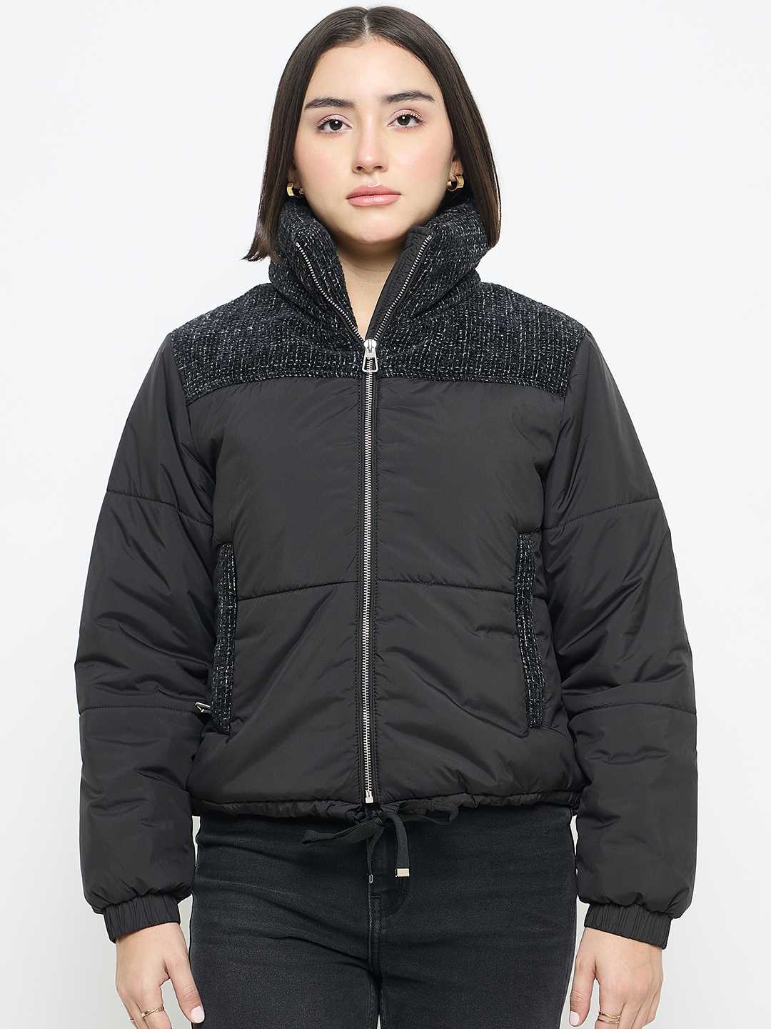 Stay stylishly warm with the Madame Black Quilted Crop Jacket. Designed in a trendy cropped length with soft quilting, this jacket adds a chic, modern edge to your winter wardrobe while keeping you comfortably snug.