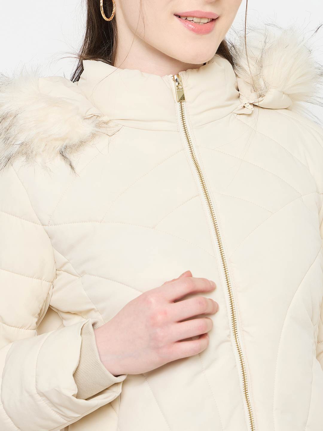 Shop the Madame Quilted Beige Jacket with Hood for women. Featuring a classic beige tone, quilted design, and a cozy hood, this jacket provides warmth and effortless style for winter. Perfect for casual outings, layering, and everyday cold-weather fashion.