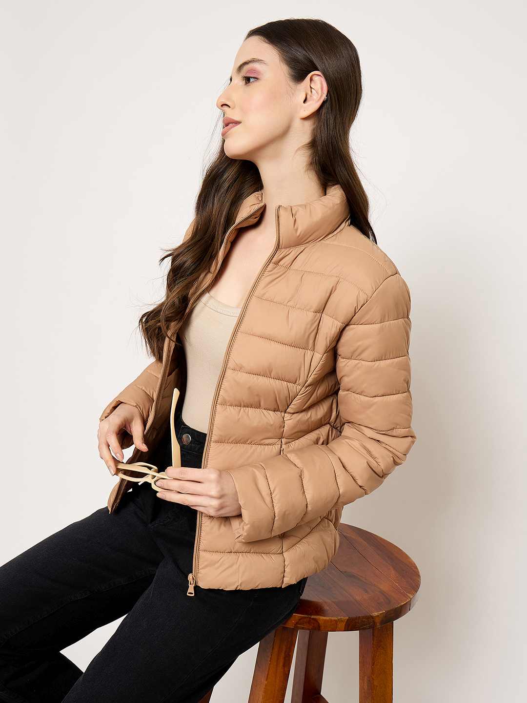 Stay warm and stylish in the quilted khaki puffer jacket from Madame. Lightweight yet cozy, it’s perfect for layering over casual outfits, adding a vibrant pop of color and a trendy touch to your winter wardrobe.