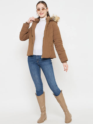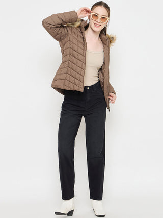 Madame Wine Colour Quilted Jacket with Faux Fur Hood