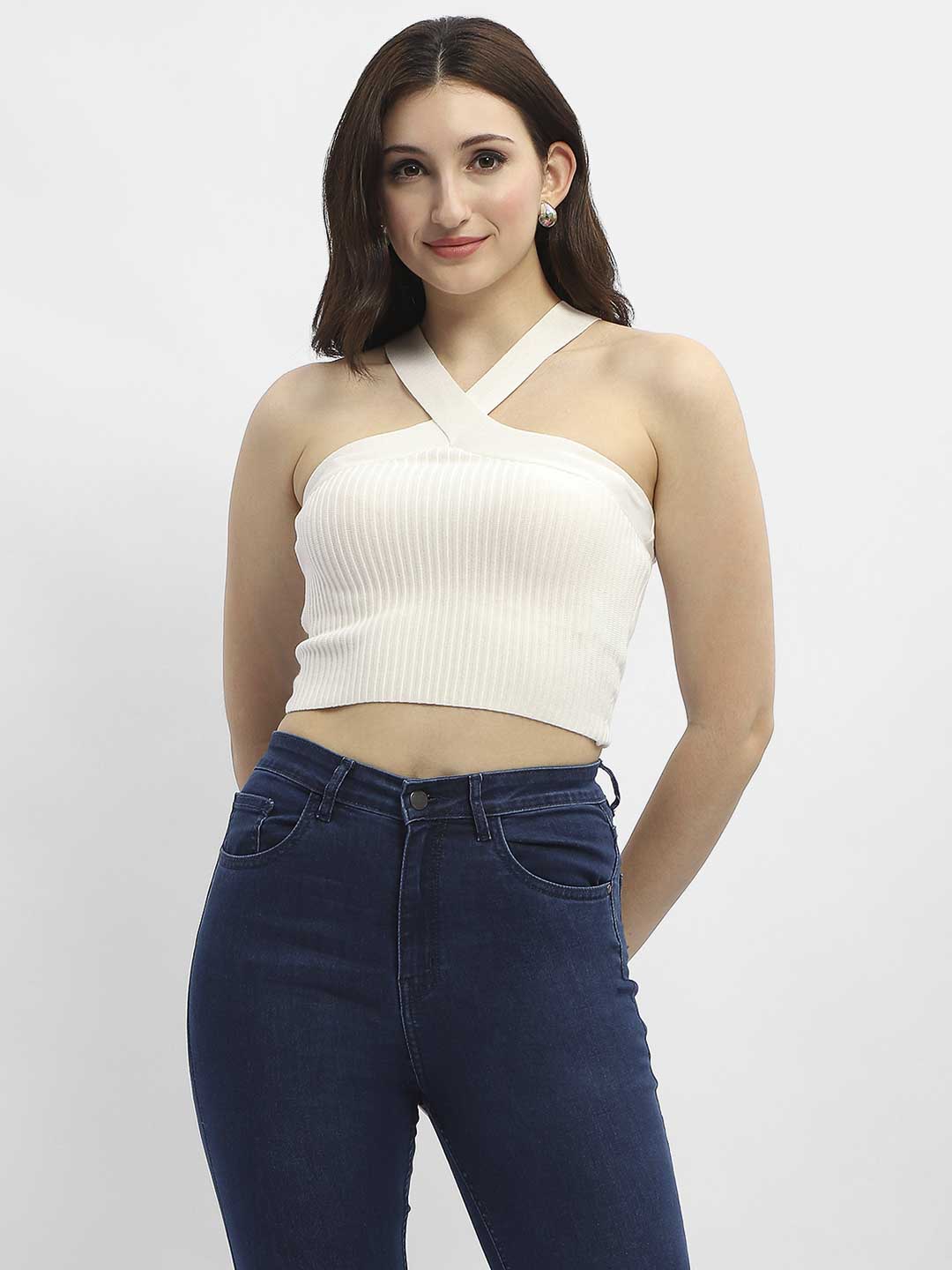 | Enjoy a refreshing summer top with this Criss Cross Halter Neck Off-White Crop Top. This crop top will instantly liven up any outfit thanks to its stunning Off-White colour. Wearing this on hot days will be a breeze thanks to the short cut and the flirtatious crisscross halter neckline. Wear it during the day with jeans or high-waisted shorts and at night with a flowy skirt. |
