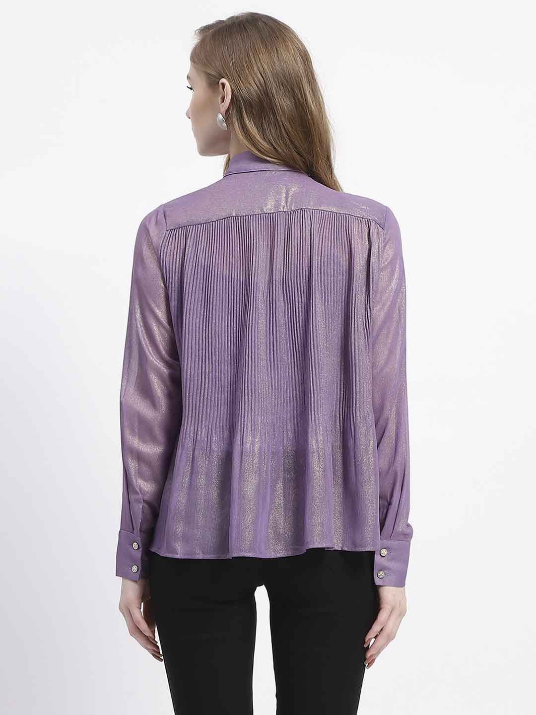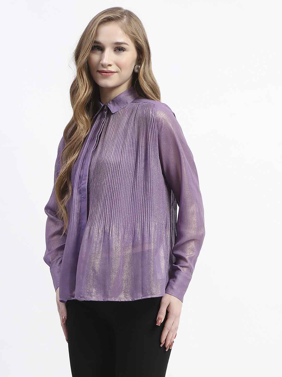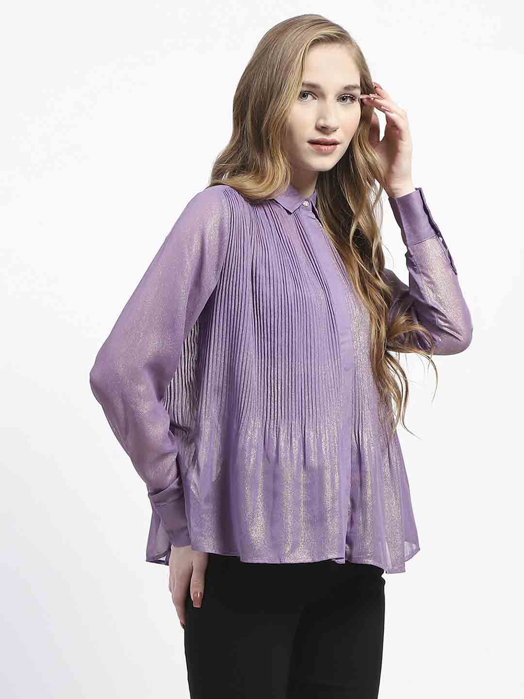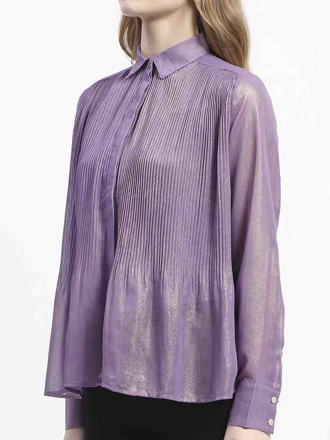 Madame Shimmer Pleated Hem Sheer Lilac Shirt