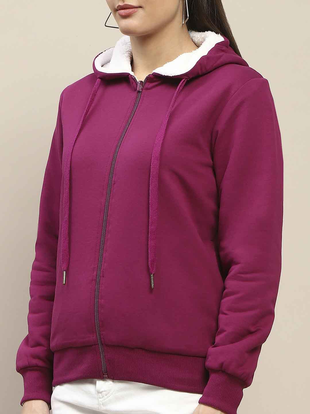 Madame Fur Hood Metal Detailed Plum Zipped Sweatshirt