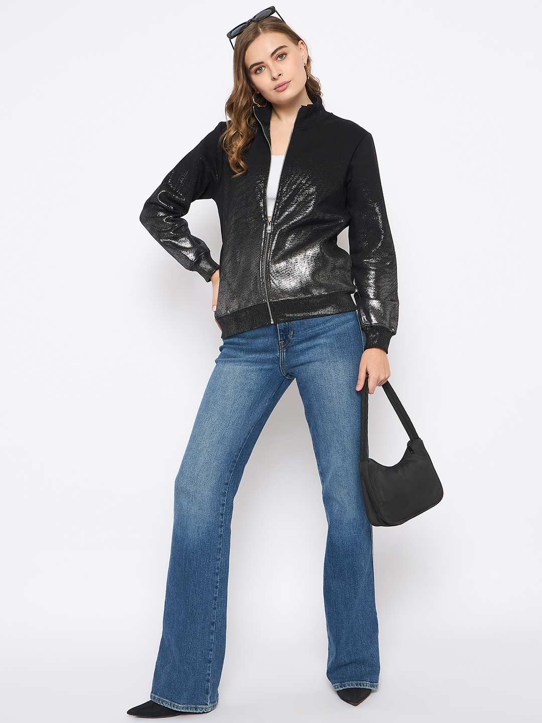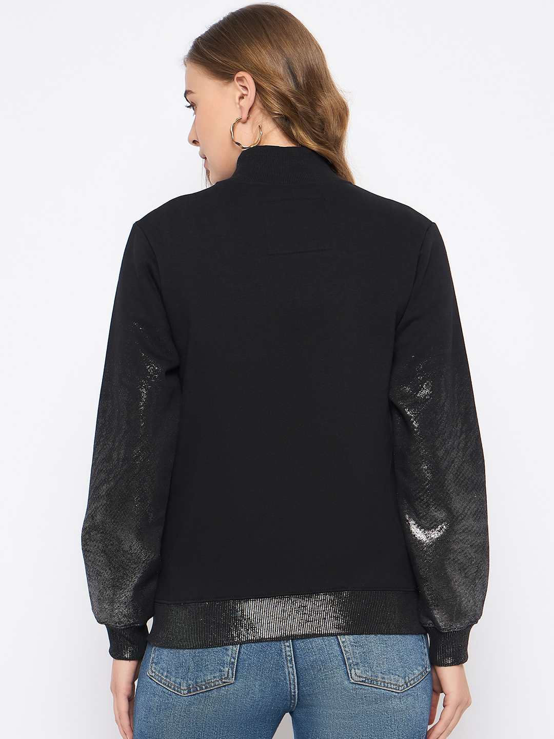 Madame Cotton Blend Quilted Zipped Black Sweatshirt